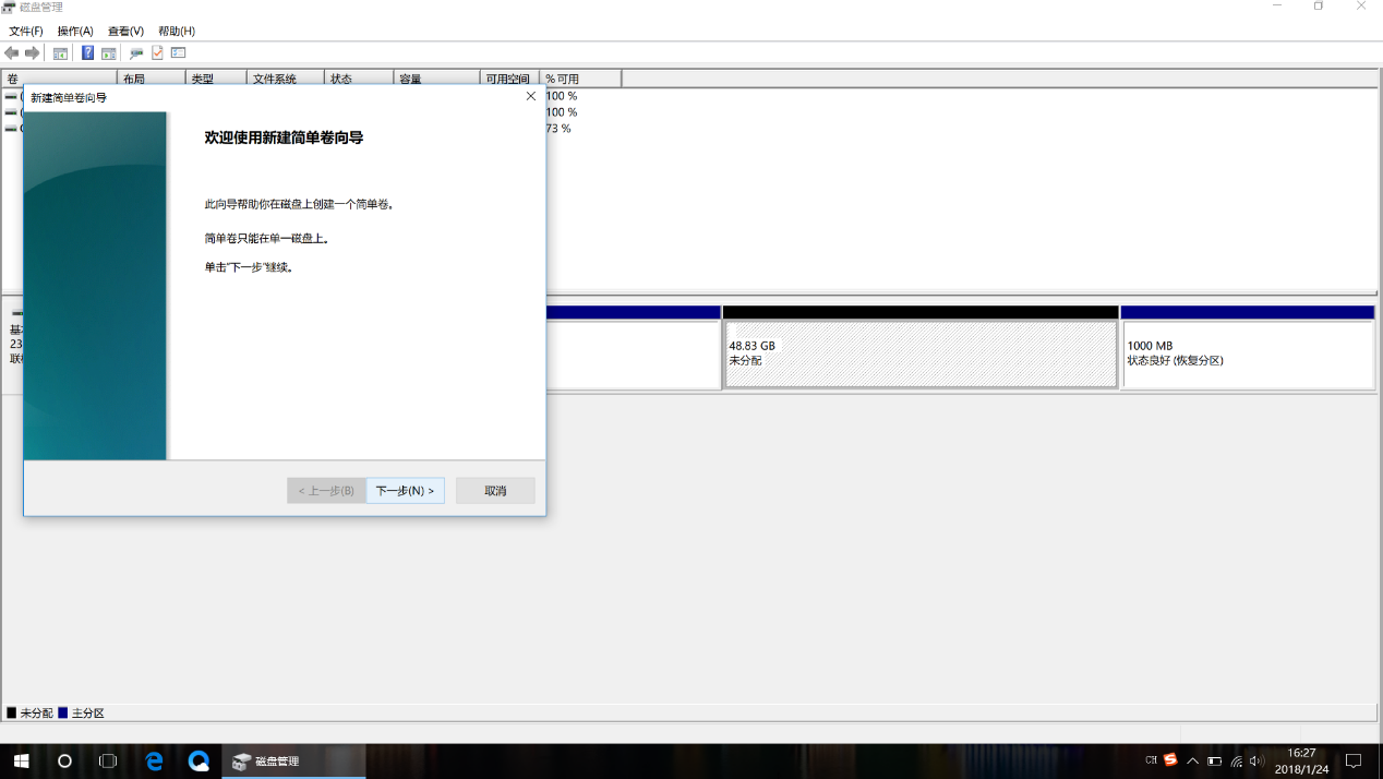 5、出现“欢迎使用新建简单券”向导,点击下一步。