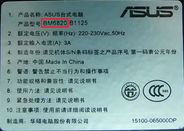 方法 2 : 面对机箱前面板,在机箱的右侧下侧,您可以找到类似左图这样的标签,其中的产品型号一栏即为您使用产品的型号。